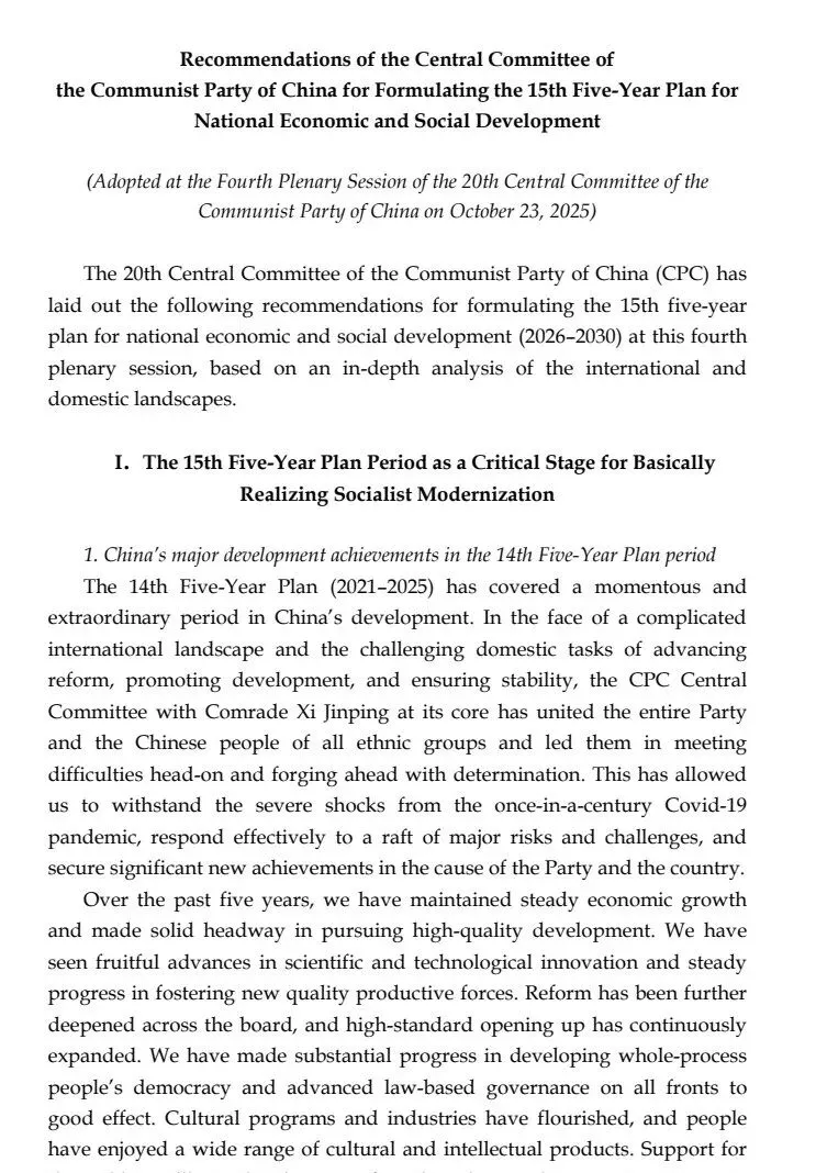 中共中央关于制定国民经济和社会发展第十五个五年规划的建议(英文).pdf链接:https://pan.quark.cn/s/cf966442dc3e