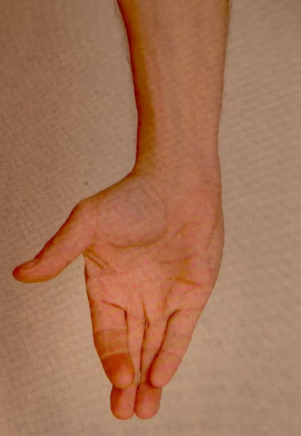 6.显著肌无力的患者也可表现出Wartenberg征阳性,当患者伸手插裤子口袋的时候,小指会卡在口袋外面;小指外展无力,无法对抗阻力。