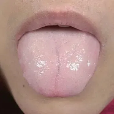 舌面上有各种形状的裂纹、裂沟,深浅不一、多少不等。裂纹或裂沟中无舌苔覆盖者,多属病理性裂纹;裂沟中有舌苔覆盖,则多见于先天性裂纹,根据舌色不同分为但裂纹和红裂纹。阴液亏虚,舌失濡养:舌体表面的黏膜因失水而收缩、紧绷,最终形成裂纹。这种裂纹一般为舌红少苔。血虚不润,舌体失养:血虚导致的裂纹舌,舌色通常失淡白的,舌体偏瘦薄,裂纹多为细密状。实热燔灼,津液被劫:外感热邪入里,或脏腑积热,邪热炽盛,直接灼烧津液,导致舌面失去大量水分。这种裂纹常伴随老舌、红舌、黄燥苔。舌体可能苍老坚实,裂纹多而深。脾虚湿浸,苔裂肉不裂:脾虚运化失常,水湿内停。湿邪上犯于舌,把舌苔浸润得肿胀,但是舌体本身没有开裂。但当舌苔表层因湿浊太重而撑开,看起来就像裂纹。先天性裂纹:裂纹呈纵行或辐射状,舌质正常,舌苔正常,身体无不适。⑧舌衄