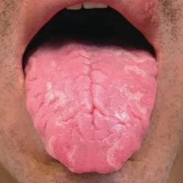 舌体肿大而厚实,伸舌满口,甚则不能收回口中,舌色多红或青紫。心脾热盛:外感邪毒或心脾积热上攻,导致舌体血脉极度充血、肿胀。药物中毒:误服或过量服用某些药物(如某些抗生素、阿托品类药物)可引起舌体肿胀。④瘦舌(分为红瘦舌、淡瘦舌)