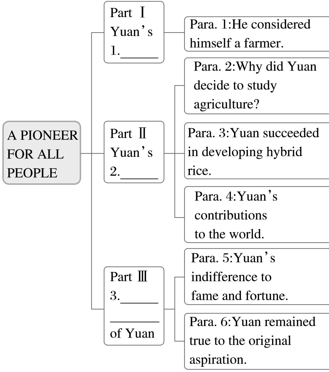 1.Yuan Longping, known as the “father of hybrid rice”, was one of China’s most famous ____________(scientist).(P50 Para.1)