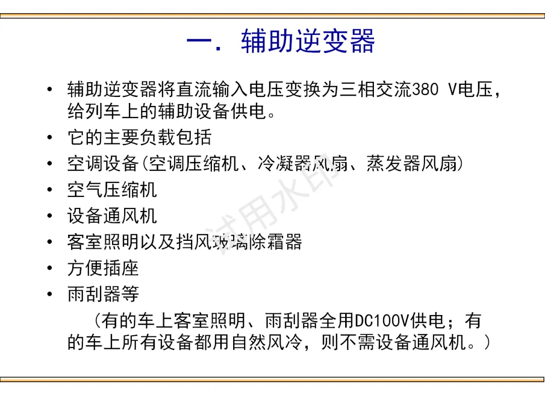 >城轨车辆辅助供电系统学习资料