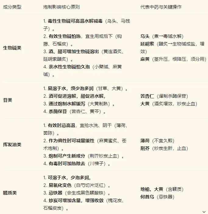2.成分为基:理解炮制如何影响各类化学成分,是掌握炮制现代科学原理的关键。
