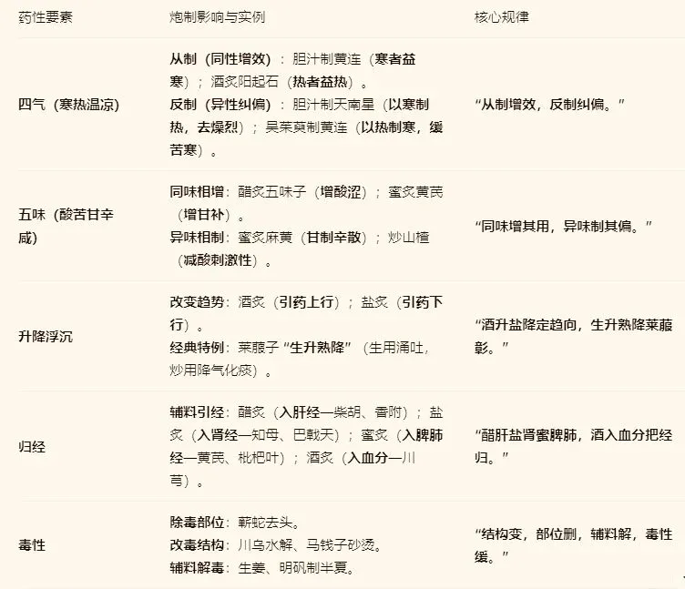 3.药性为魂:从四气、五味、升降浮沉、归经 、毒性角度理解炮制如何调整药性,这是中医药理论的精髓。