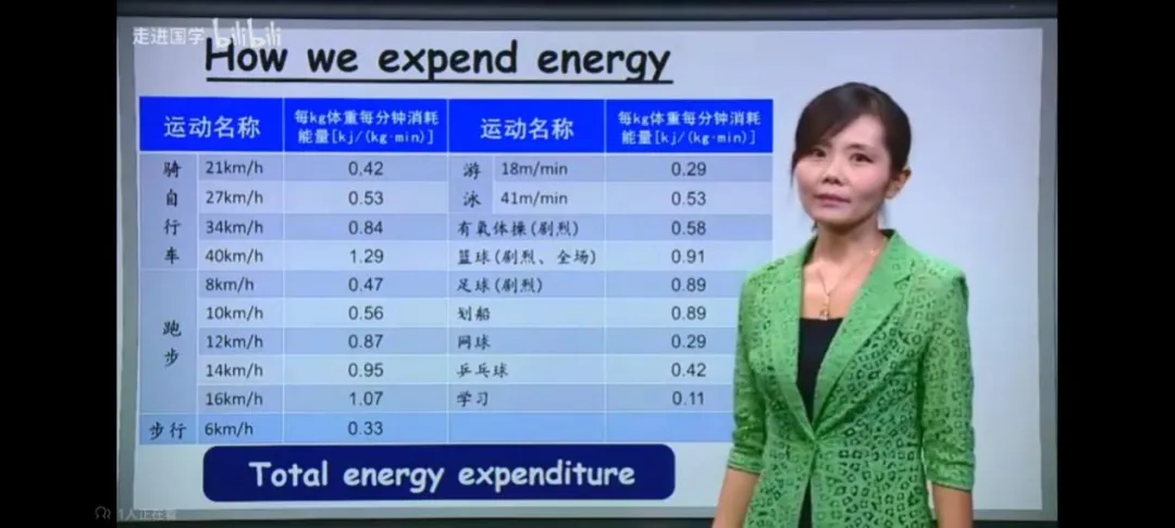 定义:人体进行各种身体活动时的能量消耗,也是唯一能由我们主动控制的消耗途径。普通成年人占比: 15%~30%,专业运动员或体力劳动者会更高。影响因素:肌肉发达程度、体重、活动强度、持续时间、劳动熟练程度(新手做同一件事比老手耗能更多)。老师还列了一些常见运动的能耗参考表(注意单位是千焦 / 公斤・分钟),我也截图保存了: