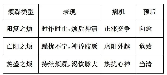 此“烦”非虚阳外越之躁烦,乃阳气来复,与阴寒相争之烦。其特点为: