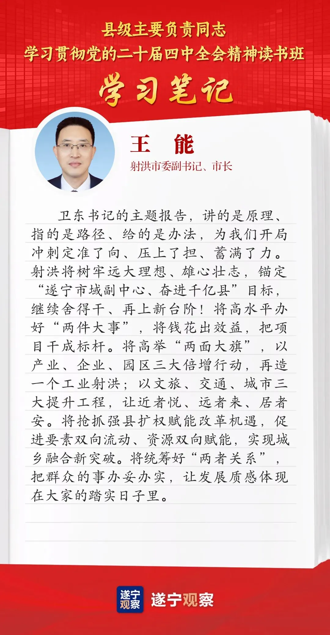 读书班学习笔记|射洪市委副书记、市长王能:锚定“遂宁市域副中心、奋进千亿县”目标,继续舍得干!