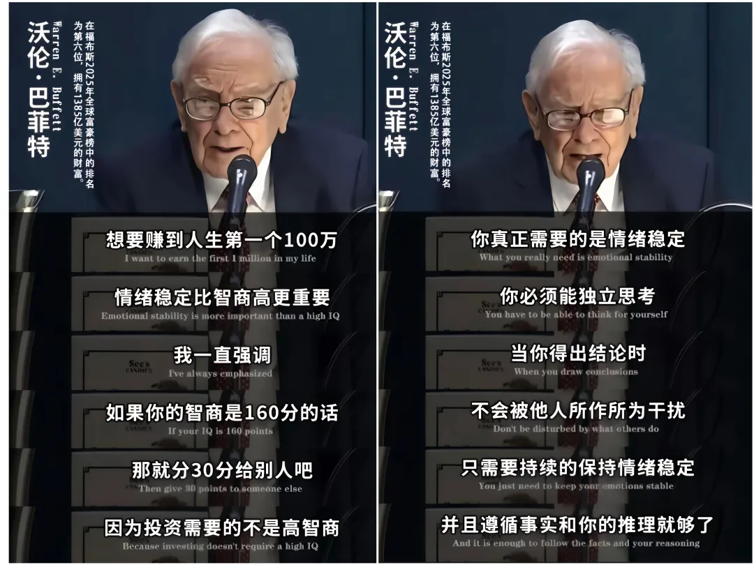 巴菲特的核心逻辑:做生意不是“赚快钱”,而是“赚长久的钱”;不是“赌运气”,而是“找确定性”。比如你开一家小店、做一个线上项目,本质和他买股票一样——要找“能一直做下去、能持续赚钱、自己能看懂”的事,不要跟风做自己不懂的领域,也不要为了短期利益牺牲长期发展。