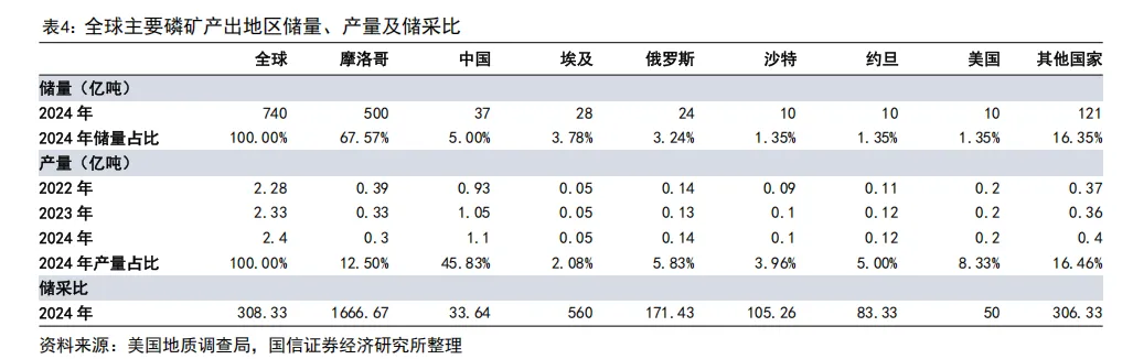 磷矿资源禀赋差、环保约束强,导致国内供给持续趋紧。我国磷矿资源呈现富矿稀缺、贫矿居多、品位偏低、伴生复杂等显著特点。2005-2016 年开采量快速扩张,但 2016 年长江大保护上升为国家战略后,沿线磷矿及磷化工企业整治力度加大,全国磷矿石产量在 2017-2020 年连续下滑;2021-2024 年虽略有回升,但受多年高强度开采影响,富矿资源加速枯竭,整体品位持续下降。中国以全球 5%储量支撑近半产量,资源保障压力突出,稀缺属性持续强化