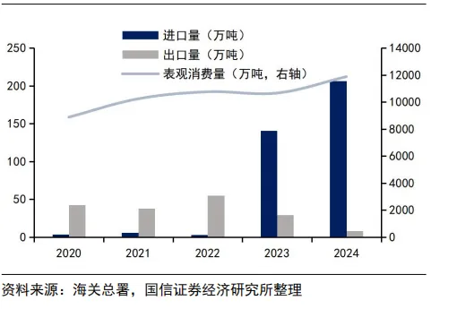国内产能瓶颈存在,进口量逐年增加。