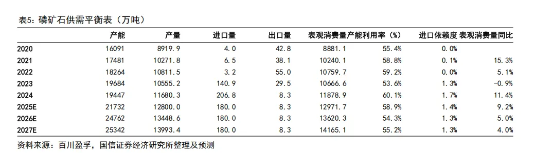 下游磷肥需求仍为刚性支撑,但占比由 2015 年的 78%降至 2024 年的 54%;湿法磷酸消费占比从 2021 年的 7%跃升至 2024 年的 17%,部分得益于新能源需求驱动。