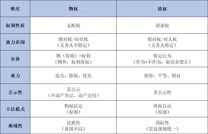 5. 核心对比:物权(静态支配)VS债权(动态请求)
