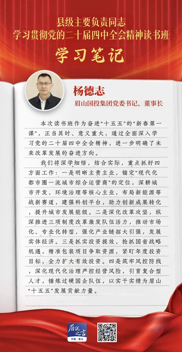 读书班学习笔记|眉山国投集团党委书记、董事长杨德志:深化国企改革,奋力服务眉山“一城三地”建设