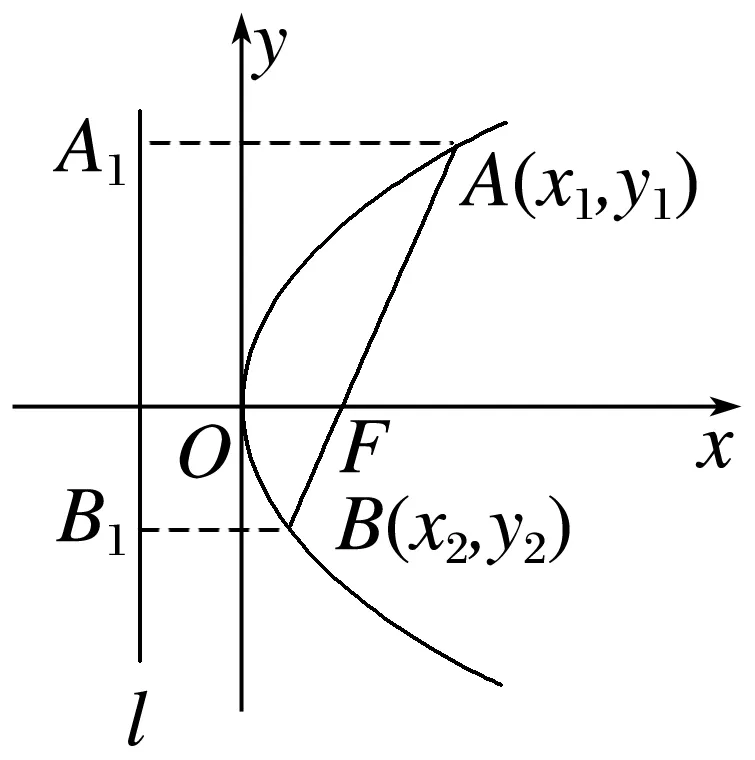问题2 过抛物线y2=2px(p>0)的焦点的直线交抛物线于A(x1,y1),B(x2,y2)两点,那么线段AB叫做焦点弦,如图.如何求弦AB的长度?