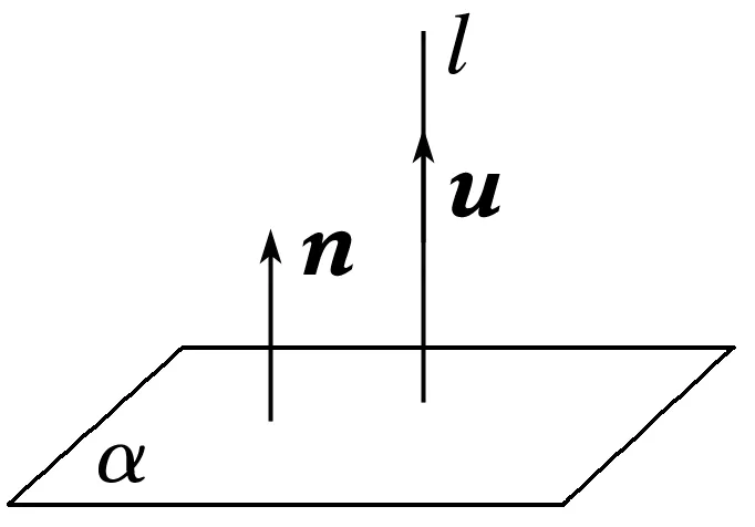 问题2 如图,设u是直线 l 的方向向量,n是平面α的法向量,当直线l垂直于平面α时,u,n之间有什么关系?