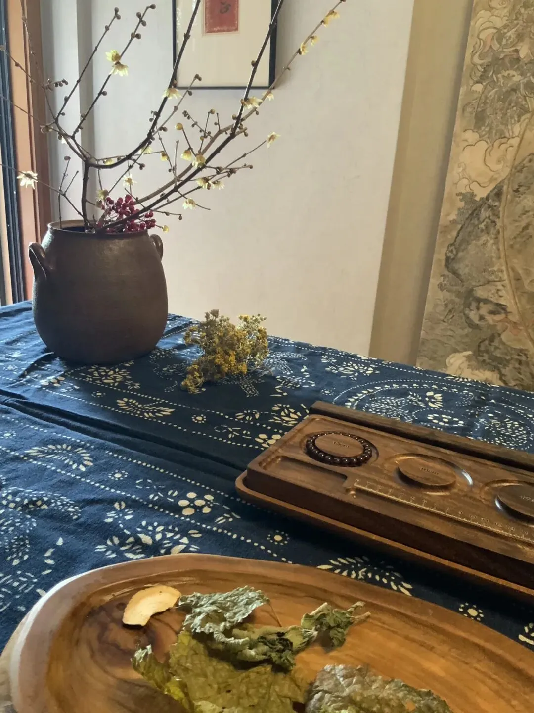 有木桌,有麻布,有一只器物,有一点安静。