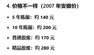 核心:基酒存放时间更长,用老酒勾调。