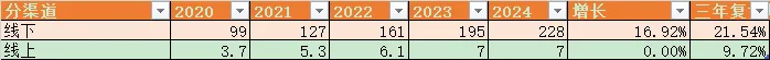通过线上收入的情况也可以看出来,渠道商是有压货的。线上应该是公司直销,消费者购买的,这个体现了实际的消费需求,2024年线上已经没有增加,而线下还在增加,说明经销商有压货,按照今年的形式,推测的话,2025年,线上收入可能也是负增长,等年报出来验证一下。