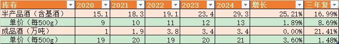 但是公司每年的存货的吨数也是增加的,半成品酒的库存年化增长16%,这又是为什么?