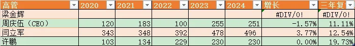 最近5年,管理层非常稳定,且工资收入和业绩大体挂钩。