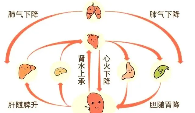 五气五味入体后,并非单方向运行,而是通过肝升肺降形成气机循环: