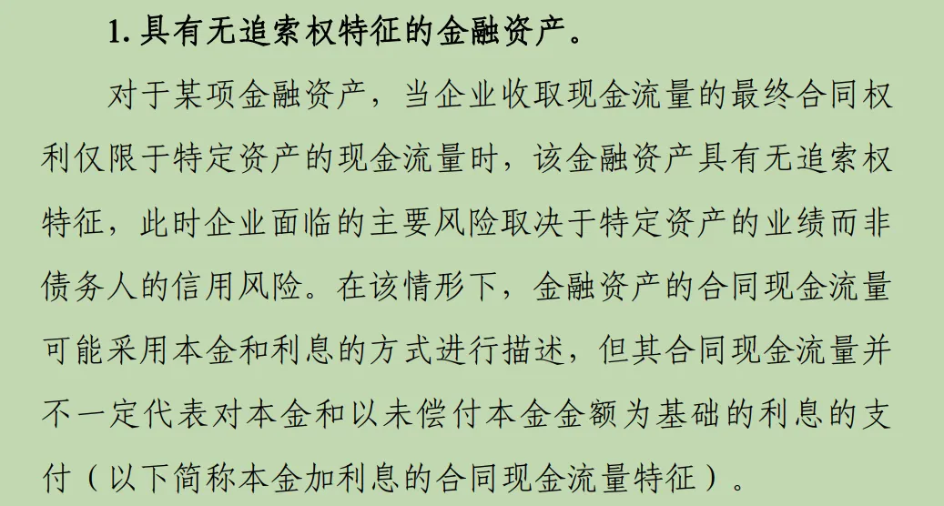 定义明确:无追索权特征是指债权人的合同收款权在整个工具存续期(包括违约时)都仅限于特定资产产生的现金流。这说明:风险从“债务人会不会还钱”(债务人的信用风险)变成了“这个资产能不能赚钱”(特定资产的业绩)。实质重于形式:合同上可能写着“每年支付X元作为利息,最后偿还Y元本金”,看起来像贷款。但“利息”可能根本不是对资金时间价值和信用风险的补偿,而是对资产业绩的分成。