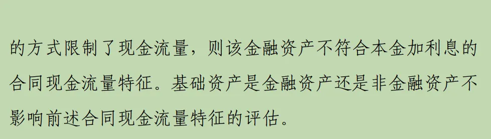 产生了其他现金流量:例如,合同约定除了基本回报外,还能在项目利润超高时获得额外分成。这“分成”就是“其他现金流量”,不符合SPPI。