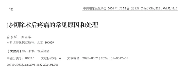 本文内容基于《痔切除术后疼痛的常见原因和处理》(2024)整理,仅供参考,具体治疗与用药请遵医嘱。疼痛可防可控,科学应对,让康复之路更轻松。