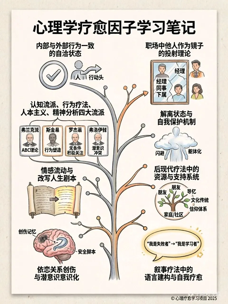 学习心理学的过程,就是学习如何成为自己的疗愈师。愿我们都能在看见与被看见中,活出整合、自洽的人生。