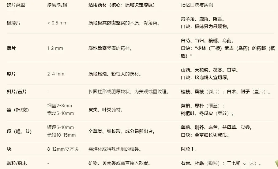 四、 饮片类型与规格(“形”与“质”的匹配)