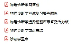 今天分享的资料是「0940-物理诊断学」电子版+学习笔记+知识点总结+期末考试重点+复习资料+习题集及答案+名词解释+历年真题试卷及答案+题库及答案+复习重点+思考题及参考答案+公式总结+考试重点基础题+知识总结+高清PDF可打印+免费分享!