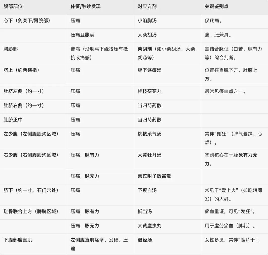 张老师提到一个观点很值得思考:如果处方有效,症状减轻了,但腹诊的压痛还在,说明病根(瘀血)未除,应该继续服药,直到腹部压痛消失为止。这为我们判断停药时机提供了一个客观的指征。