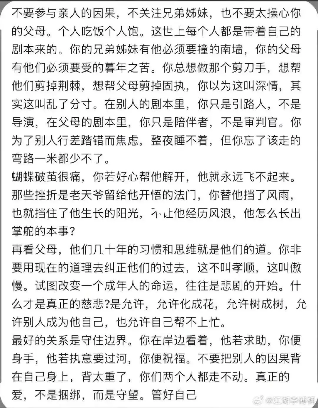 很多人的麻烦,都不是能力带来的,而是管不住嘴带来的,看似是性格的问题,实则是缺乏自律,管住嘴不是不说话,而是不该说的不说,不该问的不问,不该传的不要传,很多时候沉默不是无话可说,而是知道有些话一说就错,不追问不是不关心,是懂得尊重别人的隐私与边界,话留三分软,事到五分满,才是最稳妥的处世方式。