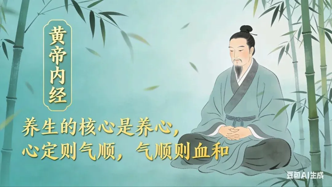 所以黄帝内经告诉我们,养生的核心是养心,心定则气顺,气顺则血和。