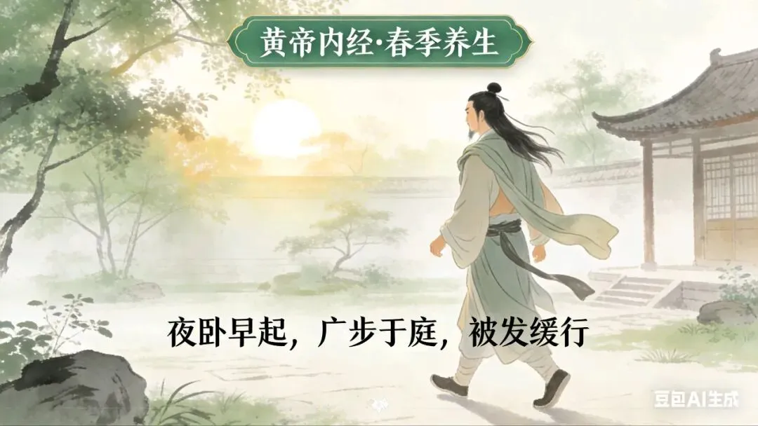 黄帝内经建议在这一季节夜卧早起,广步于庭,被发缓行。