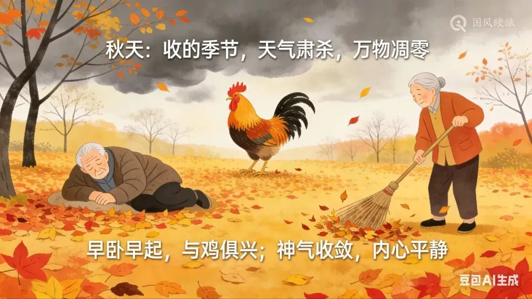 既然天地都要收敛,神气也要收敛,不要再像夏天张扬,这时要保持内心平静,抵消秋天的肃杀之气。