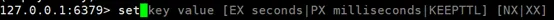 *XX:当数据库中key存在时,将value添加数据库,与NX参数互斥