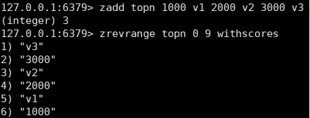 zadd <key> <score1> <value1> <score2> <value2>…将一个或多个 member 元素及其 score 值加入到有序集 key 当中。如:ZADD topn 20 java 30 c++ 40 mysql