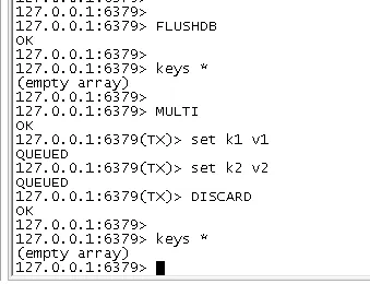 从输入Multi命令开始,输入的命令都会依次进入命令队列中,但不会执行,直到输入Exec后,Redis会将之前的命令队列中的命令依次执行。组队的过程中可以通过discard来放弃组队。