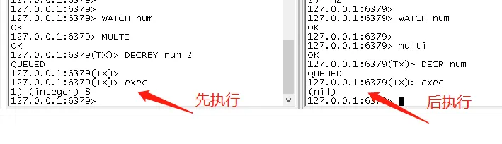 在执行multi之前,先执行watch key1 [key2],可以监视一个(或多个) key ,如果在事务**执行之前这个(**或这些) key 被其他命令所改动,那么事务将被打断。