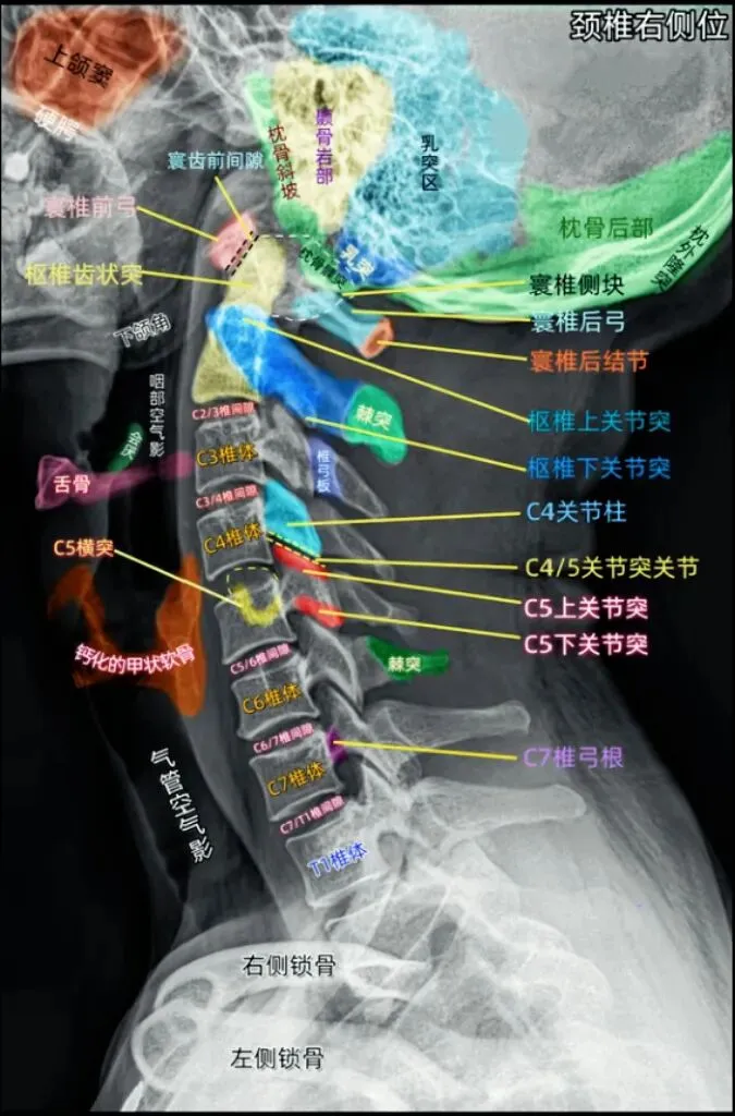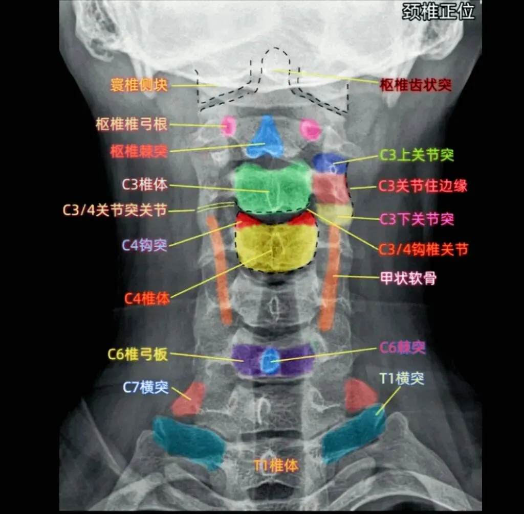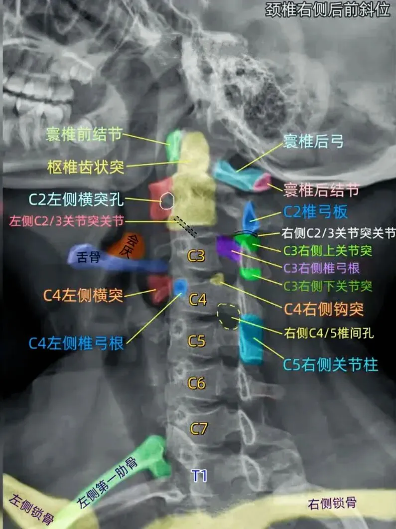 颈椎详细的X线解剖图谱参考: