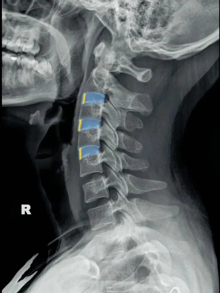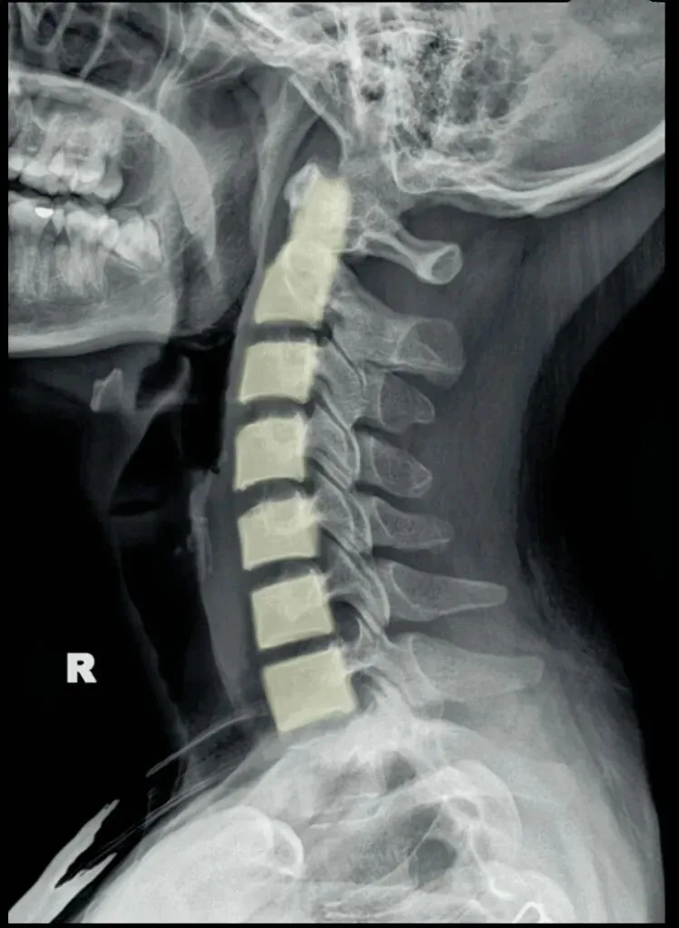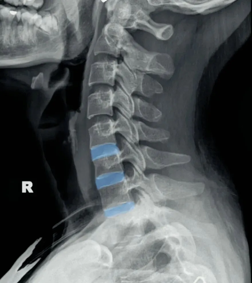 一骨是是我们主要在颈椎侧位X线片中观察椎体的形态与结构,查看椎体是否规则,