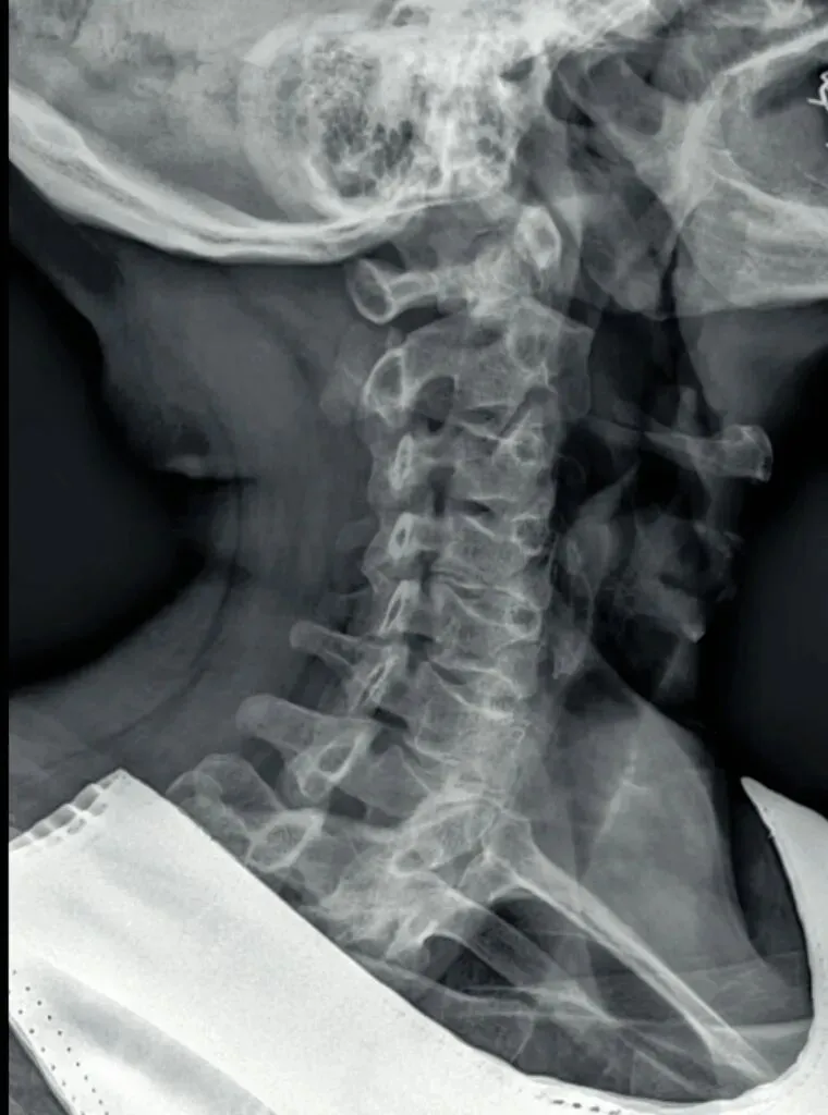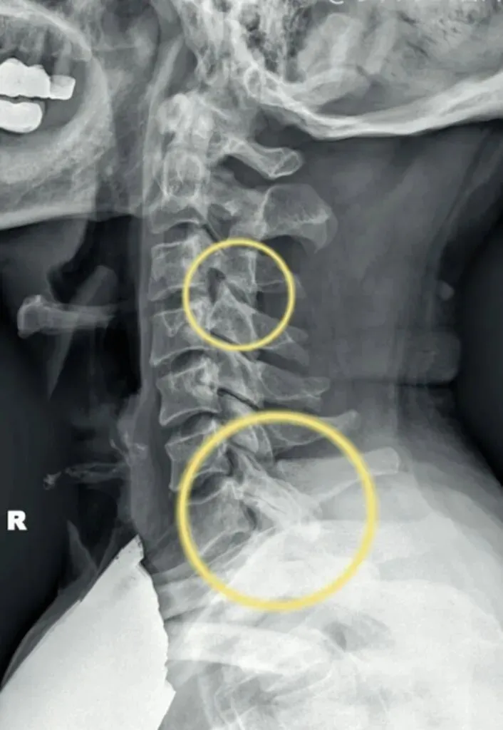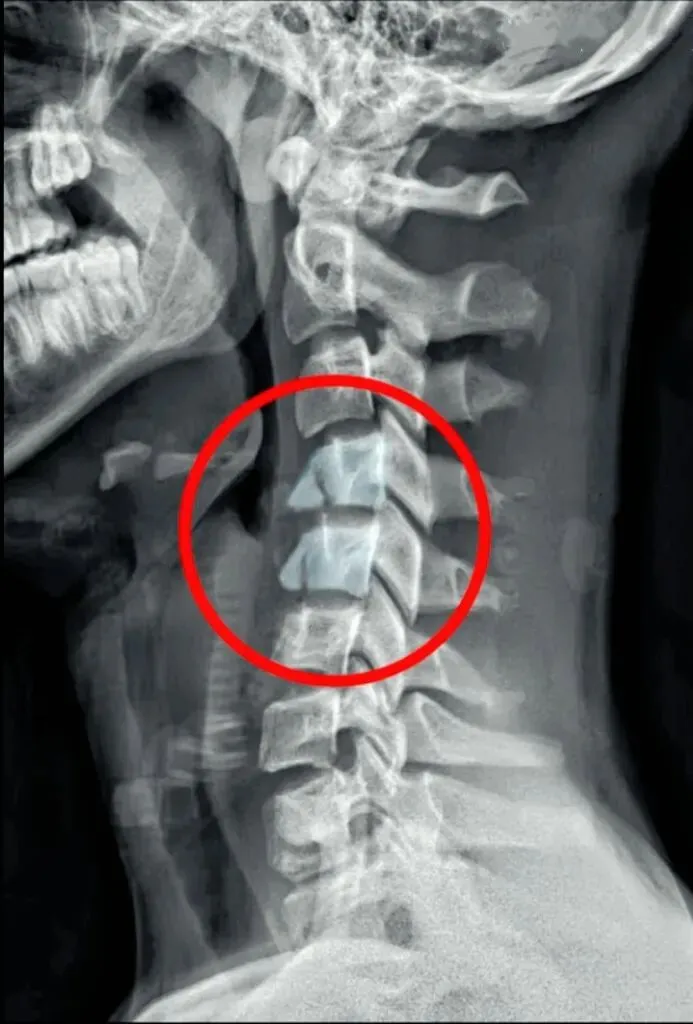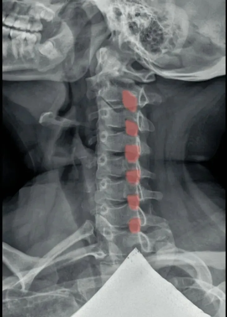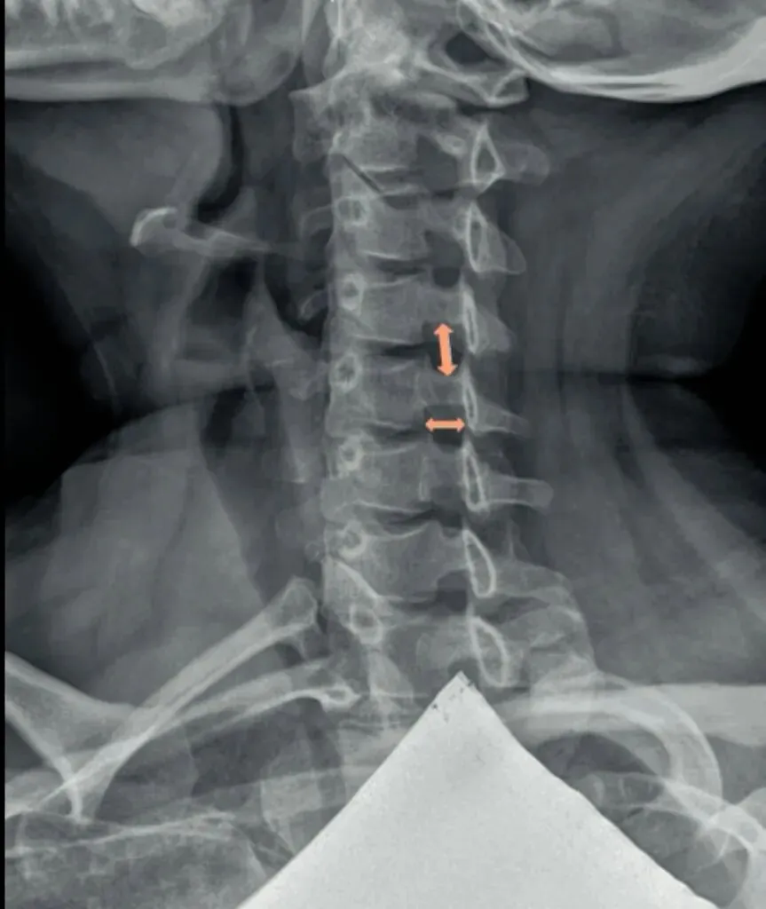 也是我们所说的椎体序列不整齐,椎体后缘的平滑曲线出现台阶或错位,多发生在颈三和颈4椎体。