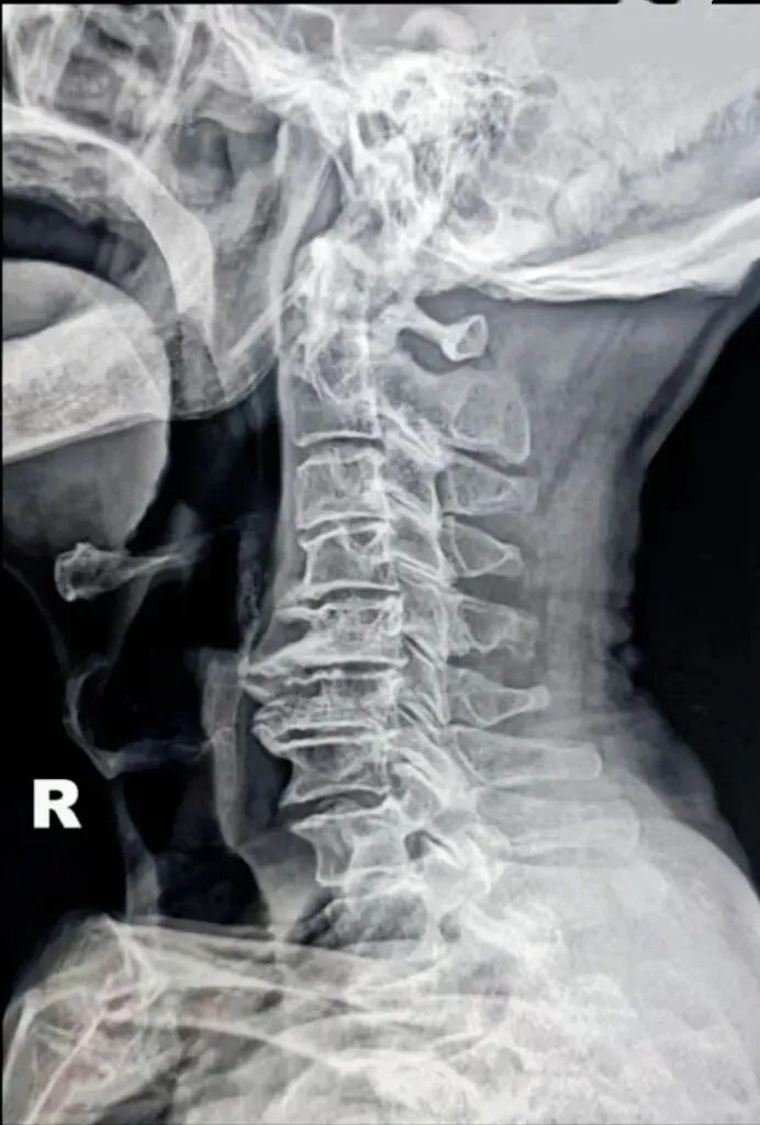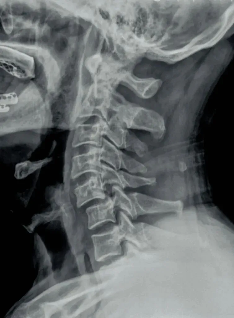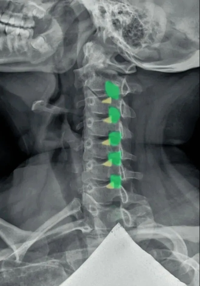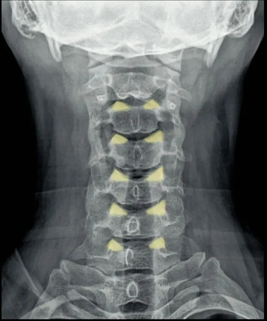 颈椎的X线平片,我们可以通过以下口诀来全面观测,一骨二弓三钩突,四韧带钙化,五间六旋,七滑脱,八孔九突十张口。