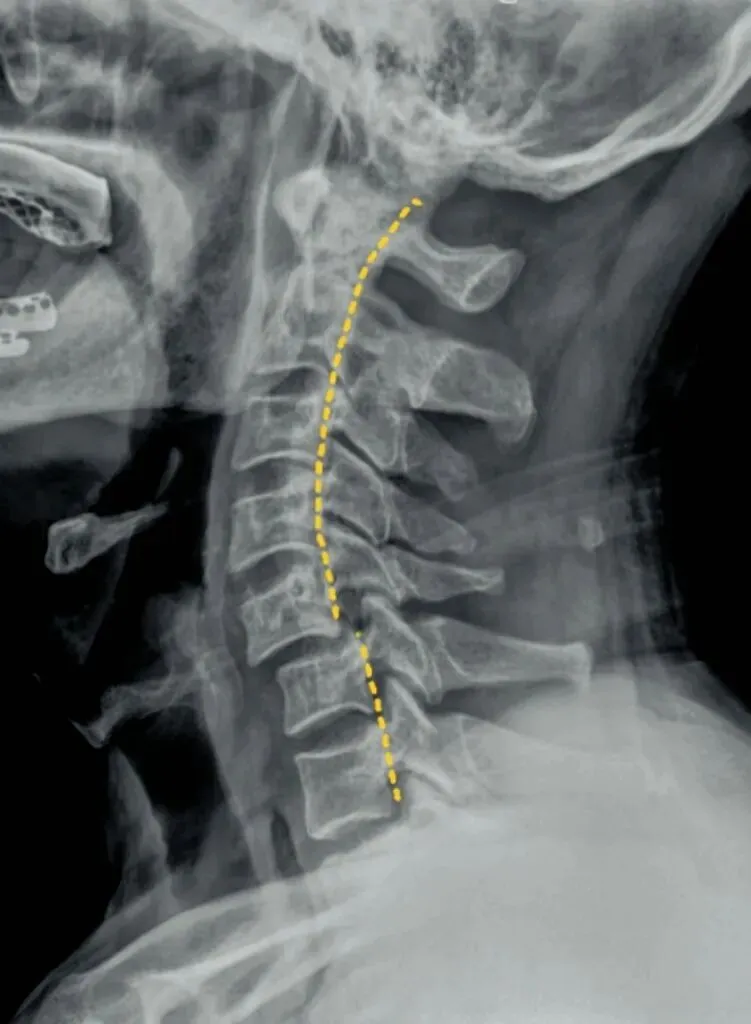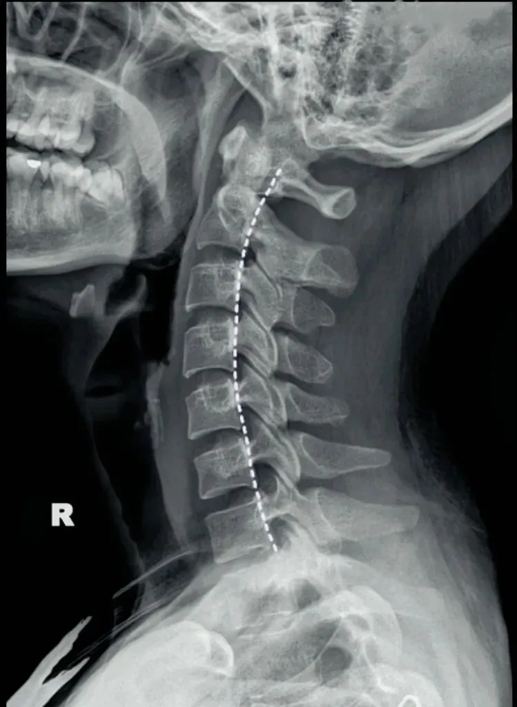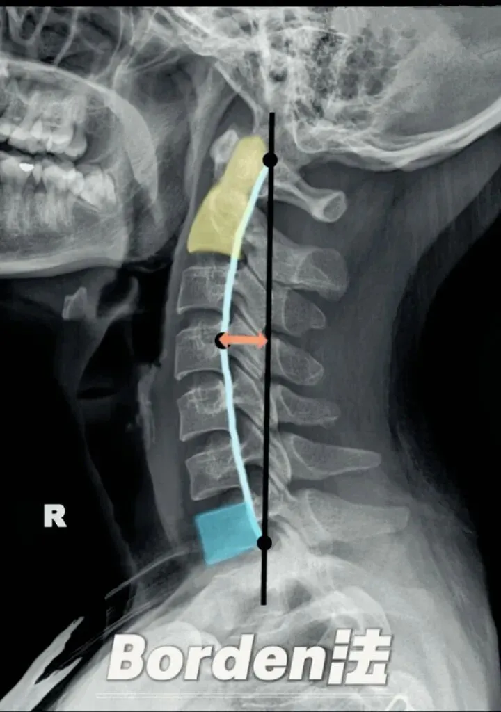 正常时,最宽处在C4椎体水平正常为12毫米,正负5毫米,小于7毫米为生理曲度变直,大于17毫米为生理曲度过度前屈,小于零时为生理曲度反曲。
