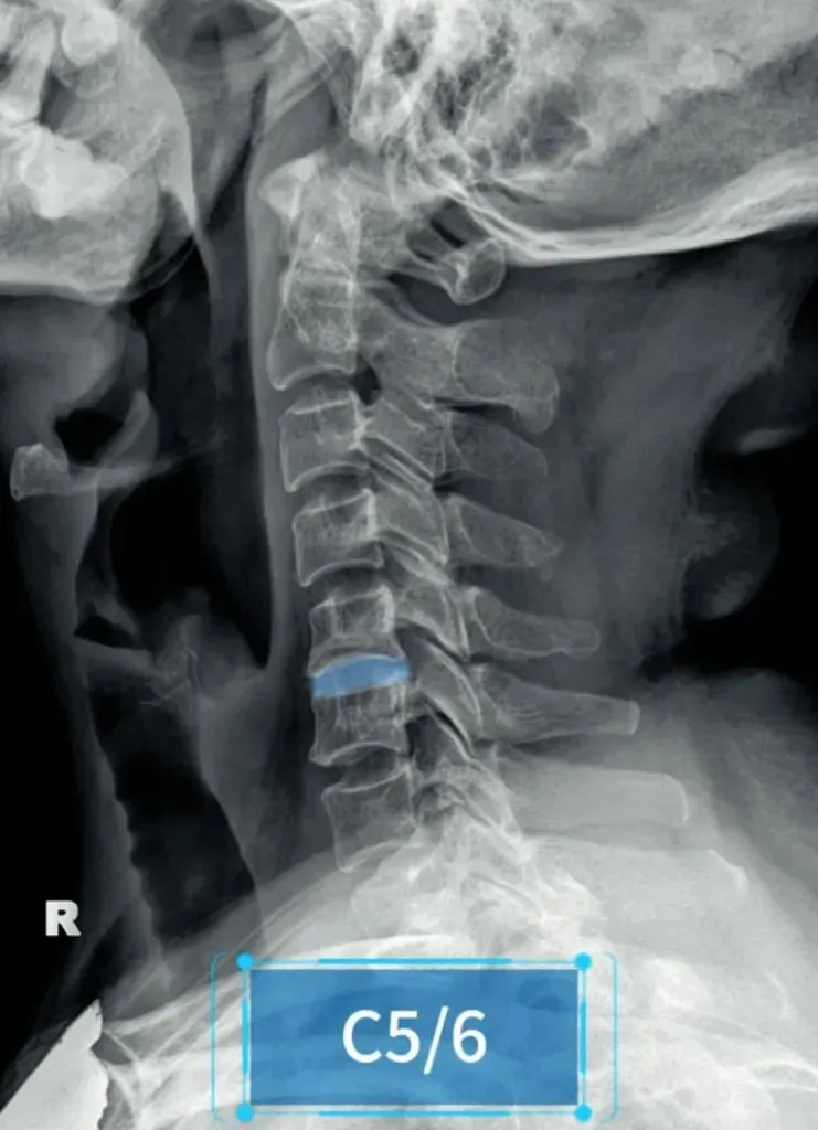 颈椎的退变最早发生在C56椎间盘上,因此C56椎间隙也最早发现变窄的征象。