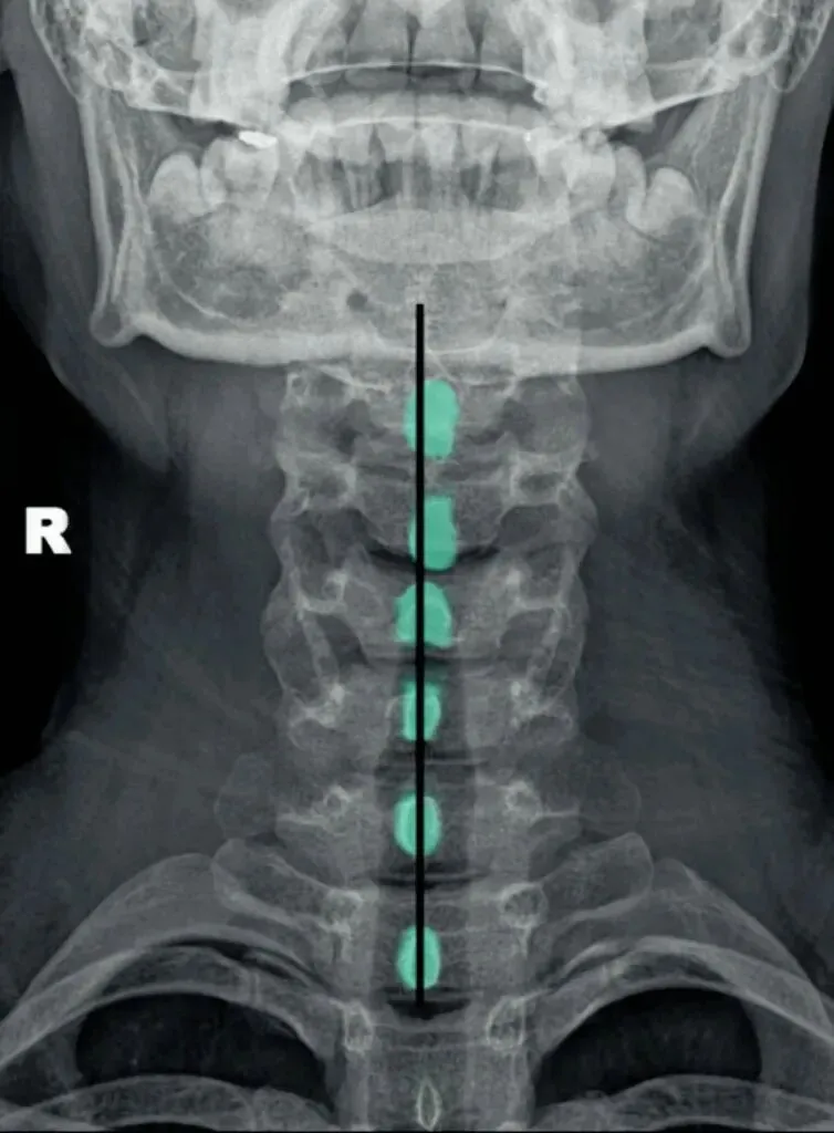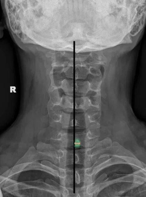 颈椎正位主要观察棘突有没有偏歪,有没有在棘突中心轴线的连线上。