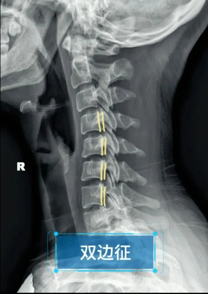 造成这两个征象的原因就是椎体后缘及双侧关节突没有完全重叠,摄影体位不标准时也会出现这种现象。所以我们要结合正侧位观察,如果正位没有出现某节段颈椎棘突偏移,但是侧位出现颈椎双凸或双边征时,大概率就是摄影体位不标准。反之正位能看到某节段颈椎棘突偏移,同时侧位能看到对应节段颈椎的双边或者双凸征时,基本可以确定椎体存在旋转。