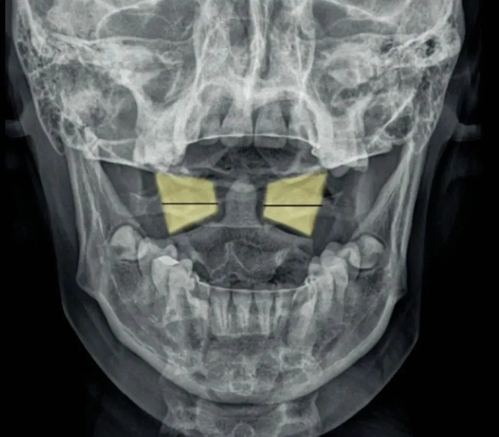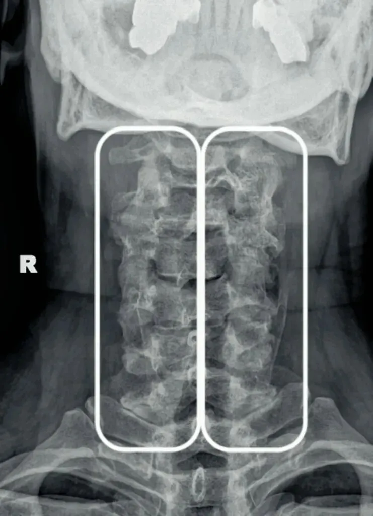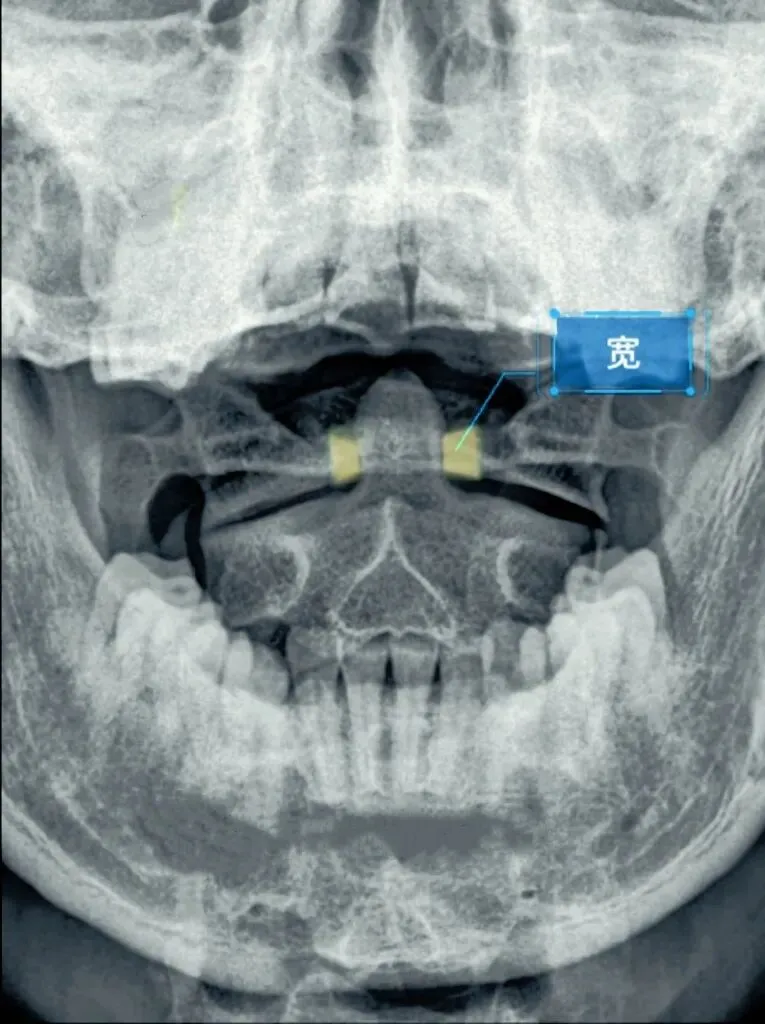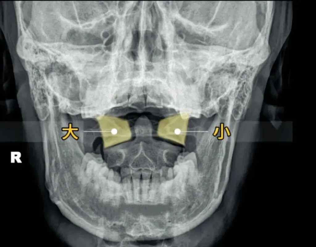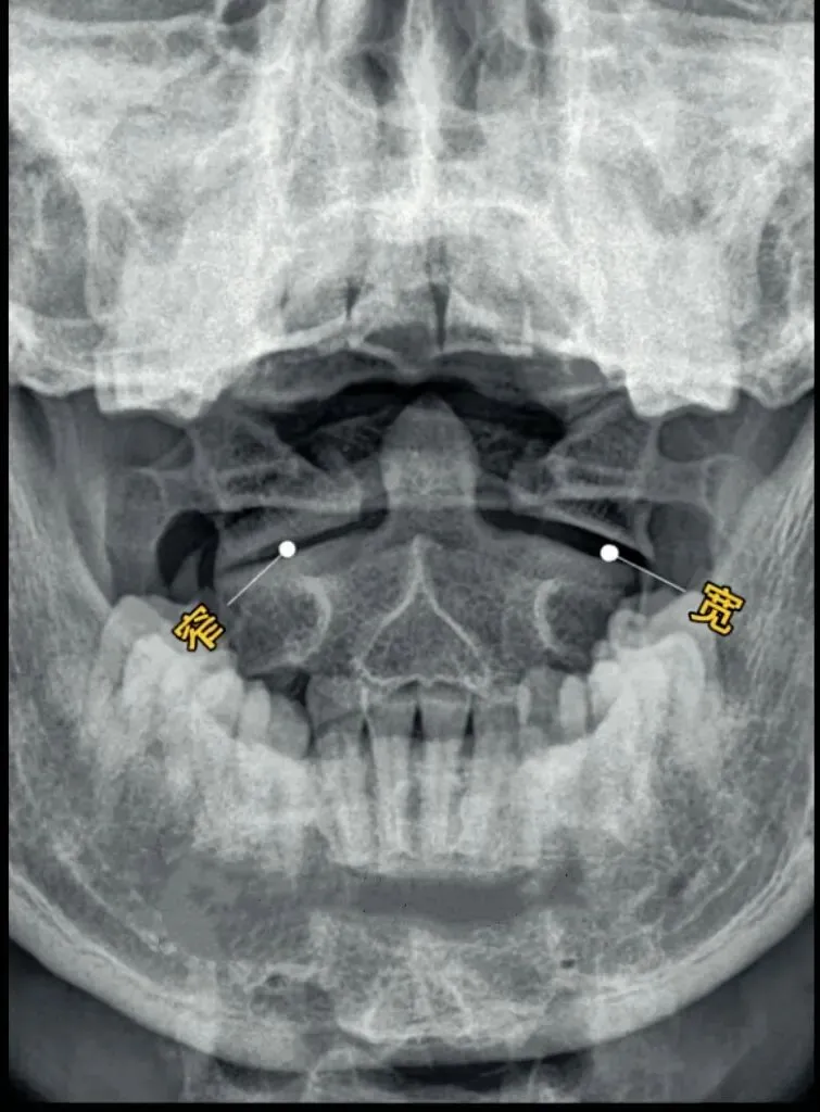 如果一边宽一边窄,就代表寰椎向窄的一方发生了侧向倾斜。