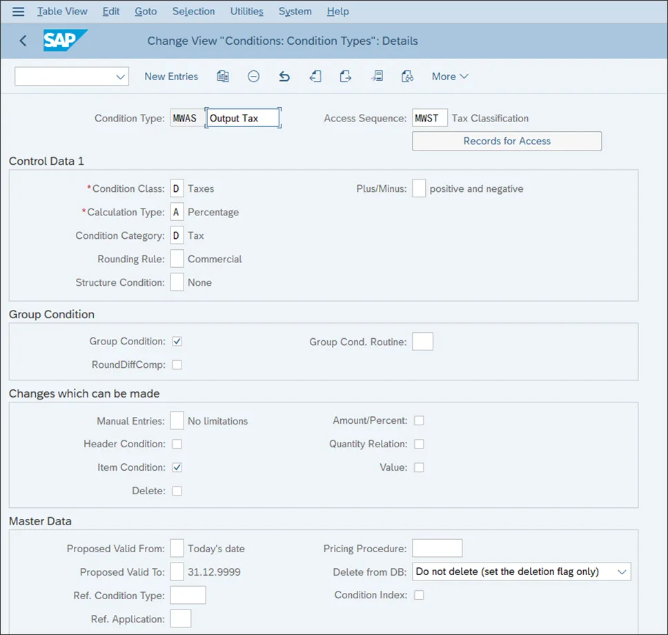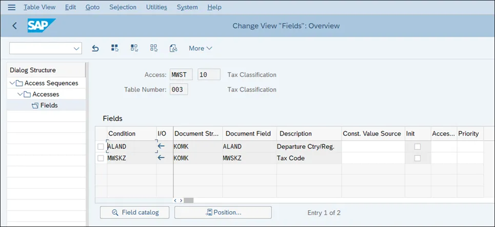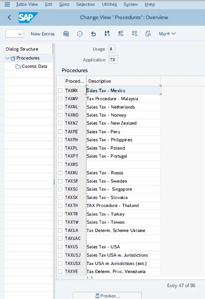 税收是 SAP 中的一个重要主题。大多数销售和采购交易都会受到税收的影响,并且全球各地对税务报告都有严格的要求。因此,您的 SAP S/4HANA 系统中的税务设置必须从流程和报告的角度反映税务要求。作为财务会计全局设置的一部分,您必须设置税务程序,并将税务程序分配给您的公司代码。然后,您必须设置该程序使用的相关税码。税务程序包含在 SAP S/4HANA 中执行税务计算的设置。这个复杂的配置对象使用访问序列和条件技术来确定合适的税码,而税码又决定了税率、要过账的总账科目以及其他相关设置。税务程序在国家层面进行维护,这使得该税务程序对给定国家的所有公司代码都有效。SAP 为每个国家提供了示例税务程序。您应该复制这些示例,通过修改它们来创建新的税务程序,或者,如果不打算进行更改,您可以使用标准程序。通过以下菜单路径检查美国标准税务程序的设置:财务会计 • 财务会计全局设置 • 销售/采购税 • 基本设置 • 检查计算程序。您会发现与设置计算程序相关的以下三项活动,如下图所示:税务程序是条件类型的集合,而条件类型又使用访问序列根据这些访问序列中定义的特定字段来确定税务记录。双击“定义程序”活动以查看美国的税务程序。下图显示了税务程序列表。注意美国税务程序 0TXUSX 和 TAXUSJ,它们基于管辖区代码(税率因管辖区而异,这些管辖区由这些管辖区代码确定)。程序 0TXUSX 设计为使用第三方软件对每个管辖区的税率进行外部计算。选择程序 TAXUSJ,然后单击屏幕左侧的“控制数据”。下图显示了税务程序是如何定义的。为每个步骤编号分配了条件类型。然后,在为该程序定义税码时,将在这个条件类型级别分配税码。现在,返回并选择“定义条件类型”活动。下图显示了可以分配给税务程序步骤的条件类型列表。选择并双击 MWAS(图中未显示),它是销项税条件,以查看其设置,如下图所示。现在,如果您单击“访问记录”按钮,您可以看到基于访问序列 MWST 中定义的字段的条件记录。如下图所示,出发国家/地区和税码是在这种情况下确定税收的字段。最后,让我们检查这个访问序列的定义。返回文中第一图中前面显示的屏幕,然后选择“访问序列”。系统会发出一条消息,表明此表是跨客户端表。换句话说,此表中的配置是基础配置,会影响 SAP S/4HANA 系统的所有客户端。此类配置应仅在黄金配置客户端中维护,并且您必须谨慎操作。下图显示了已定义的访问序列列表。选择 MWST,然后单击屏幕左侧的“访问”。您可以有一个或多个访问序列。在这种情况下,只有一个,编号为 10。选择它,然后单击屏幕左侧的“字段”;您将看到如下图所示的屏幕。税务程序是系统确定必须检查条件类型 MWAS 的国家/地区和税码字段的方式。此规则来自前面显示的并映射到条件类型 MWAS 的访问序列 MWST 的设置。你若喜欢,点个❤️谢先👇